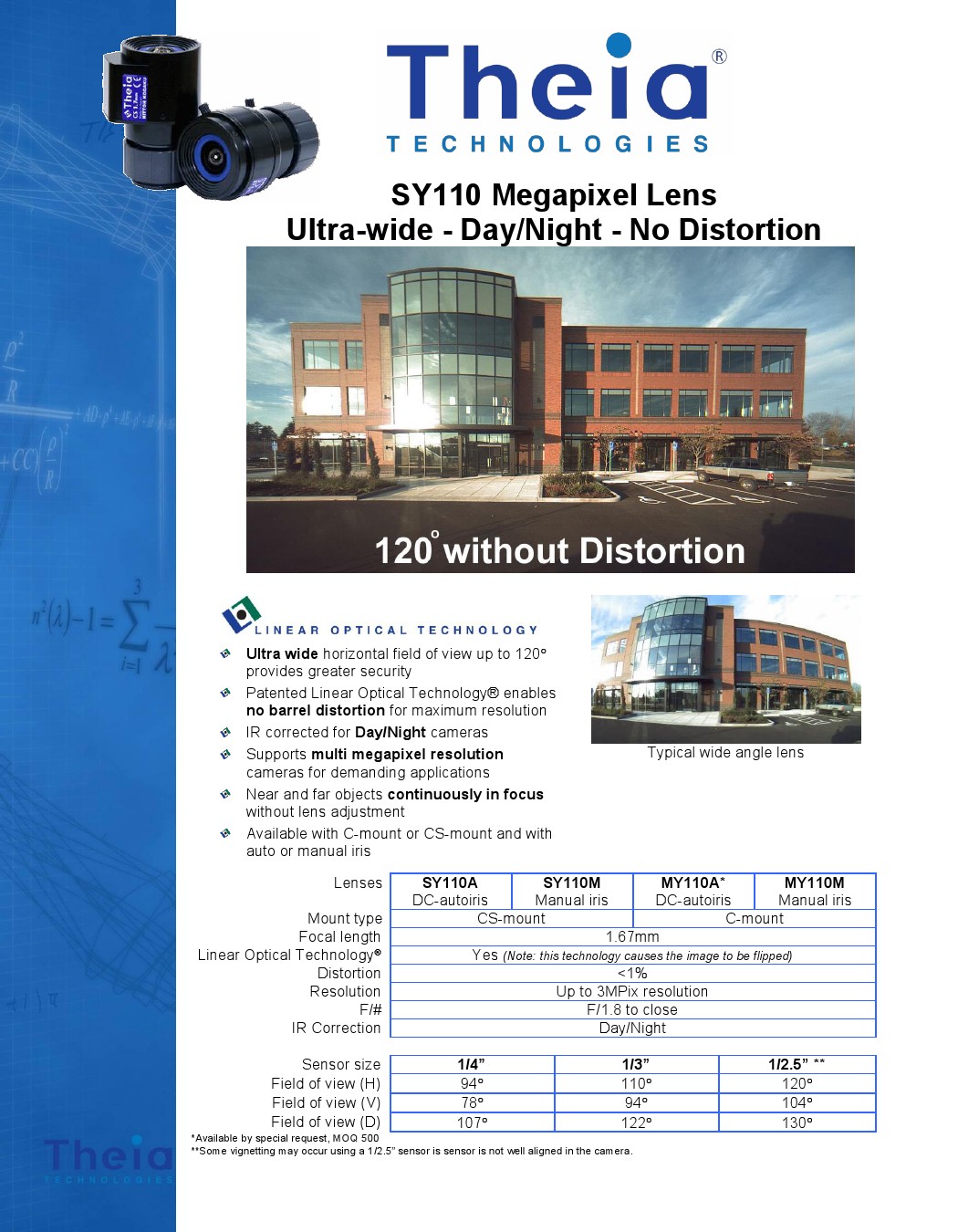 超广无失真镜头SY110/MY110
